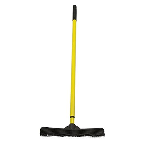 Natural rubber bristles attract pet hair on multiple surfaces, like carpet, tile, hardwood, and linoleum