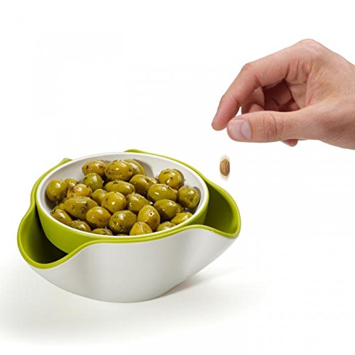 Larger bottom dish allows you to discard shells and pits, out of sight and out of the way
