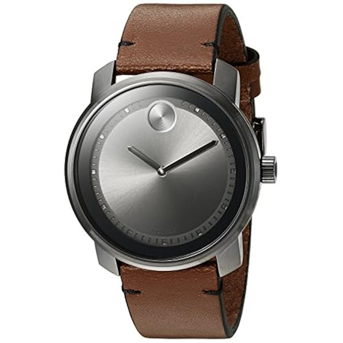 Brushed-steel watch in gunmetal with numberless sunray dial featuring signature dot at 12 o'clock