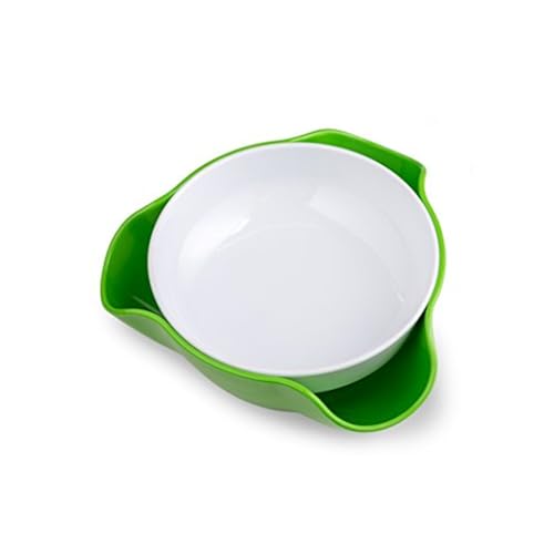 Removable top dish sits in a larger bottom dish with 3 wide, open lips.