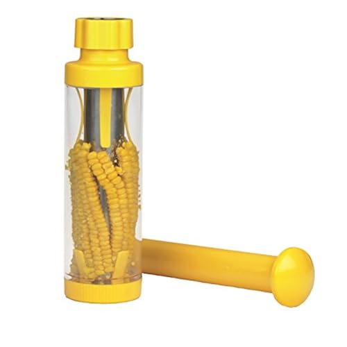This ingenious tool makes quick work of removing kernels from the cob and best of all when the kernels are stripped from the cob, they are contained inside the cylinder eliminating wayward kernels and corn juice splatters