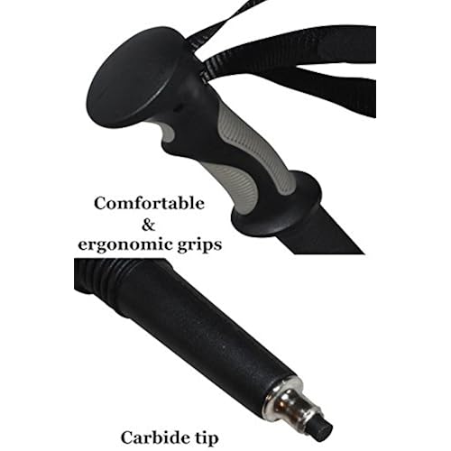 NEW & IMPROVED We have upgraded our hiking poles with more comfortable grips and padded wrist straps for added comfort on your hiking trips! Grips are more ergonomically designed with light ribbing for added grip. No more sweaty hands slipping on the poles! The padded & wider wrist strap provides more support and less rubbing/chaffing. We have also removed the problematic compass that was built into the handle of the poles on our previous design!