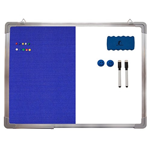 TOP QUALITY STURDY MATERIAL - resin-painted steel surface of white board part is easy for writing, painting, drawing and erasing. Blue fabric surface of the bulletin board part is great for display and pinning notes, signs, messages, pictures, memos, calendars, menus, reminders and more.The board has heavy duty aluminum frame (more durable than wood framed boards).